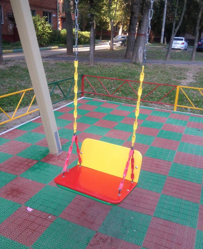 Здравствуйте Светлана! По указанию Администрации городского округа Подольск, качели на жесткой сцепки должны были быть сняты и установлены на мягких цепях. Новые качели установлены согласно гост. Просьба по данному вопросу обратиться в Администрацию городского округа Подольск.