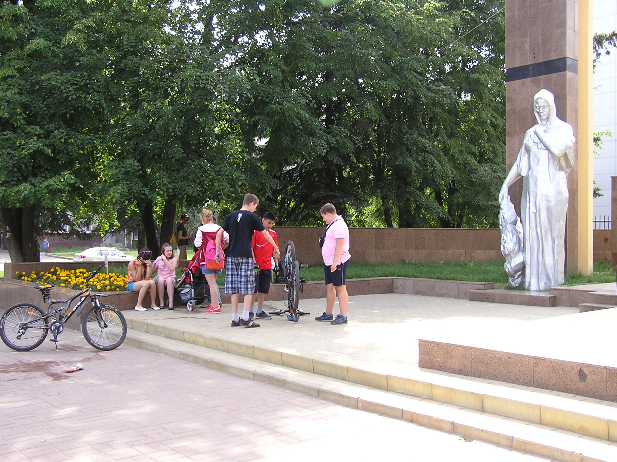 У нас же дети на велосипедах и роликах катаются у Вечного огня, в футбол играют об доску со словами о вечной памяти.
