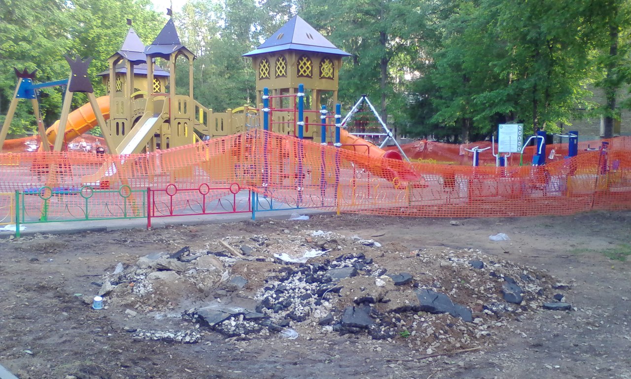 Вчера мою детскую площадку показали по областному каналу, в том числе ту самую кучу строительного мусора.