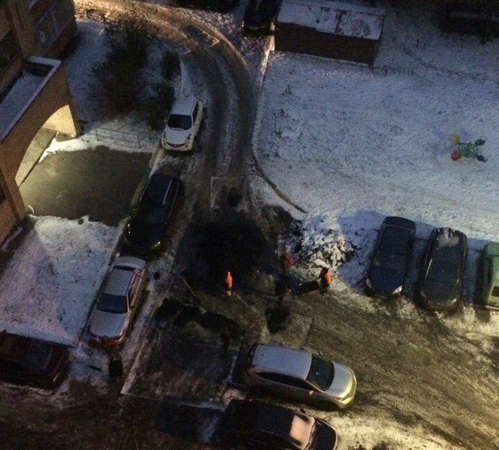 Есть у кого фото, как в Подольске асфальт на снег кладут?