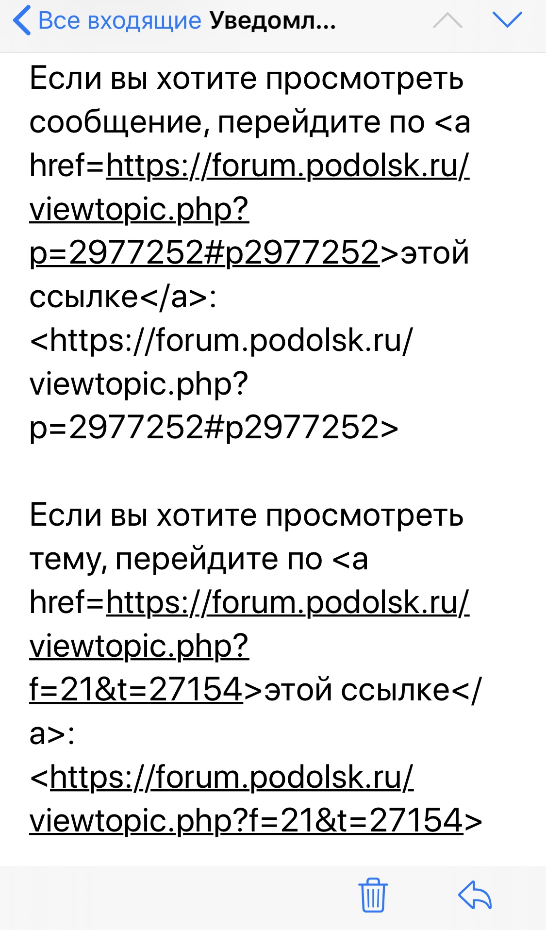 судя по всему то письмо, что подсвечивает ссылки в ios отправлено в виде html, у нас форум рассылает все в plaintext - ссылки оформить нельзя т.к. заголовок формируется под этот формат писем. В общем откручиваю все обратно - не взойдет. :(