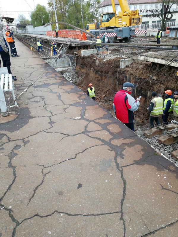 Сегодня похоже наконец начали долбить тоннель для лестничного прохода к платформе № 3 между 3 и 4 путями на станции Подольск.