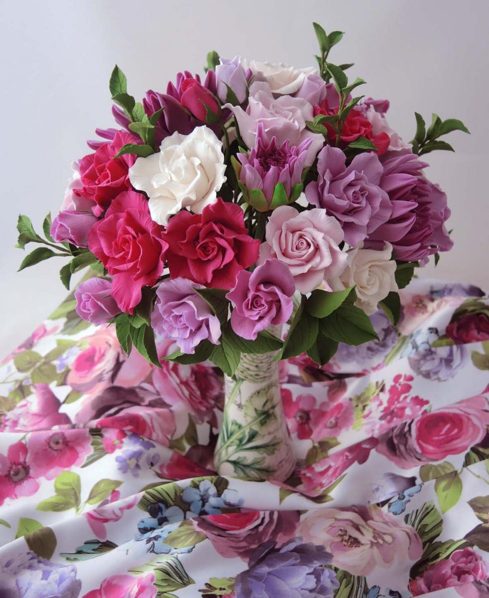 Да, цветы из глины не заменят живых, но и у них есть кое-какие преимущества. Эти цветы прочные и очень легкие. Такой свадебный букет для невесты не составит никакого труда держать весь день в руках, не надо переживать о том, что он завянет или помнется. Он сохранит свежий вид не только во время всего праздника, но и будет радовать вас долгие годы, напоминая о самом важном дне вашей жизни.