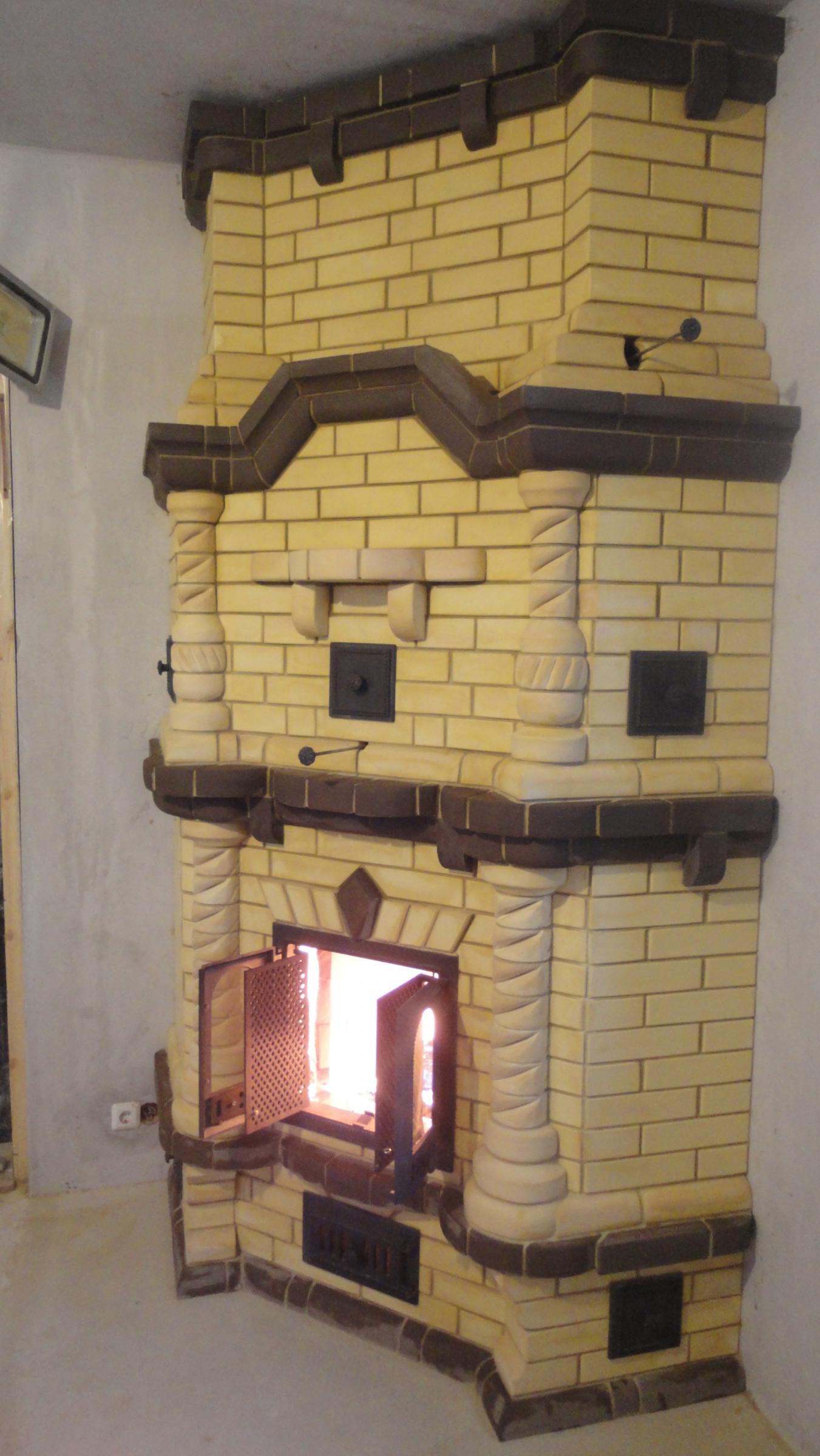 Теперь об облицовке печей.Вопрос сложный.Работа,которая не может быть доверена просто плиточнику,если он не знает тонкостей.Вся проблема в том, что печи итак достаточно "капризные девчонки" ,даже при соблюдении всех требований по кладке,выполнении тепловых зазоров их правильном заполнении,бывает "волосенная" трещина да и выскачет где-нибудь.Т.Е. при облицовке нужно понимать, что поверхность в постоянном движении,при нагреве расширяется, при остывании возвращается назад,фурнитура "двигается" по своему.Все эти расширения нужно компенсировать.В общем я не сторонник всех этих экспериментов,как правило они заканчиваются не очень хорошо.Наверно как человек называющий себя печником,я должен сказать ,что идеальная облицовка печи-это печной изразец(глиняная обожженная плитка с румпой для крепления в стене или печи).В отличии от плитки изразец не клеится,а кладется вместе с печью,вяжется в ряды печи с учетом кратности и скрепляется между собой.Все на проволоке,с заполнением пустот.Получается единое целое.Конечно процесс этот очень трудоемкий и сложный, но результат того стоит.Сейчас такие вещи делаются под заказ,с составлением проекта,работа очень длительная,комплексная и интересная.Но бывают случаи когда делаются просто изразцовые вставки в виде элементов,карнизов,тематических панно.