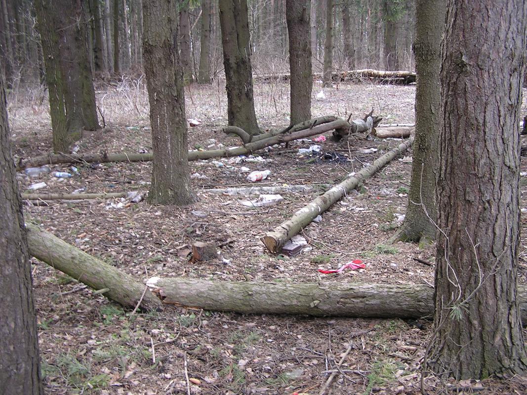 Лес за "Глобусом" и "Леруа". 35 гектаров засеяно 35 тоннами мусора (мне и один мешок в центнер показался, так что я не преувеличиваю).