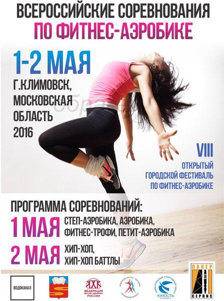 1 - 2 мая 2016г в г. Климовске Московской области (УСЦ Юность) состоятся Всероссийские соревнования по фитнес-аэробике. Вход свободный.