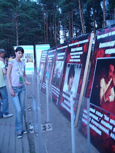 Очередной скандал случился на молодежном форуме ?Селигер?. Несколько дней подряд прогуливающихся по лагерю студентов встречали насаженные на колья пластиковые головы с прикрепленными к ним фотографиями правозащитниц Людмилы Алексеевой и Валерии Новодворской, музыканта Юрия Шевчука (который, напомним, дерзнул повести политическую дискуссию с Путиным), экс-главы ЮКОСа Михаила Ходорковского, члена Общественной палаты Николая Сванидзе? Причем каждая из нескольких десятков голов была одета в фуражку с фашистской символикой. Позорные столбы вскоре убрали, зато на месте до сих пор остаются огромные плакаты, разоблачающие все тех же ?врагов режима?.