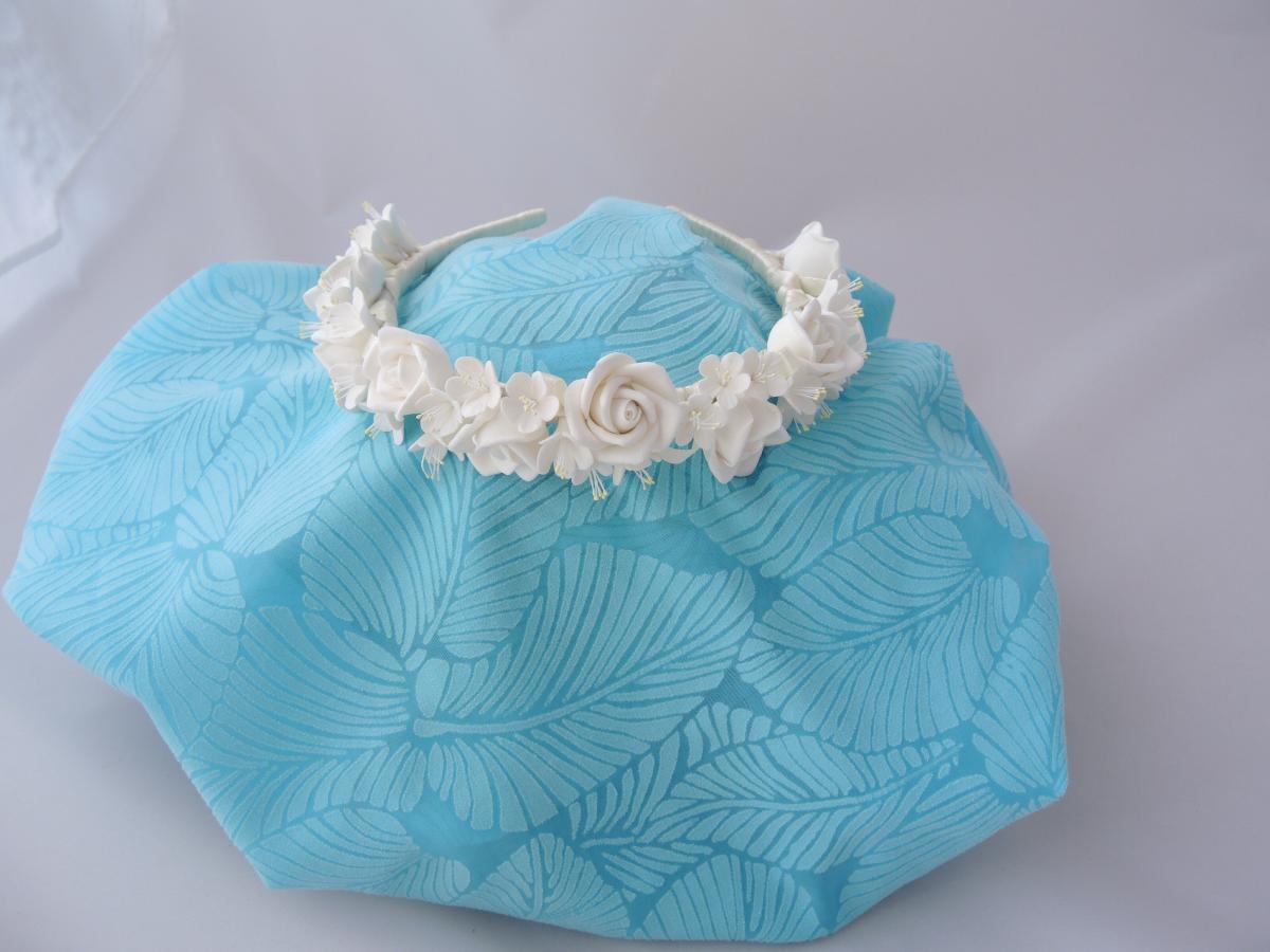 Ободок с белыми цветами. Подойдет и для свадебной прически, и для любого другого случая.