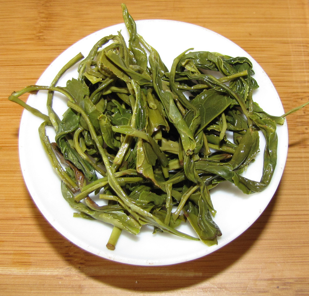 На фото чай позднего сбора после праздника Цин Мин(после 5-го апреля), отсюда довольно крупные листья и отсутствие почек.