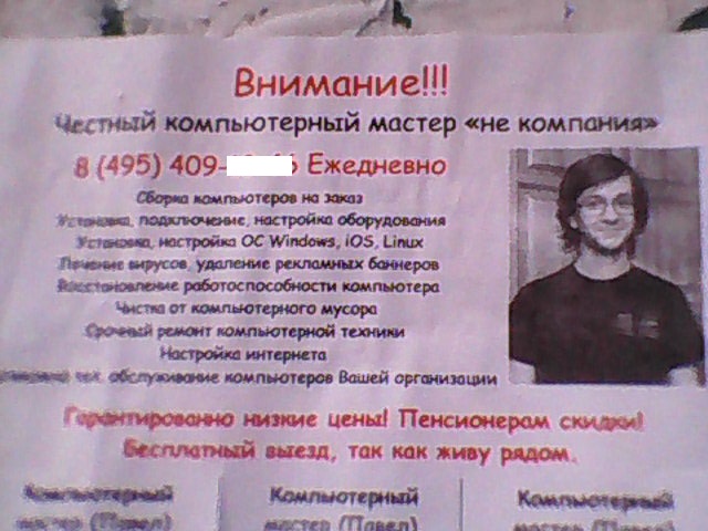 Новая мода - компьютерные чинщики делают объявления с портретами. Может, это и не их лица, не знаю.