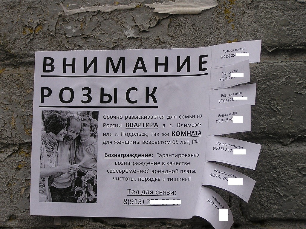 insolent_mouse писал(а): А с другой, мест для расклейки бесплатных объявлений, в городе крайне мало.