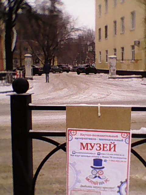 Научно-познавательный музей из Подольска повесил афишки на качественном картоне на запаянную проволоку (не знаю, как называется правильно это причпокивание) на заборы вокруг Детского парка культуры и отдыха.