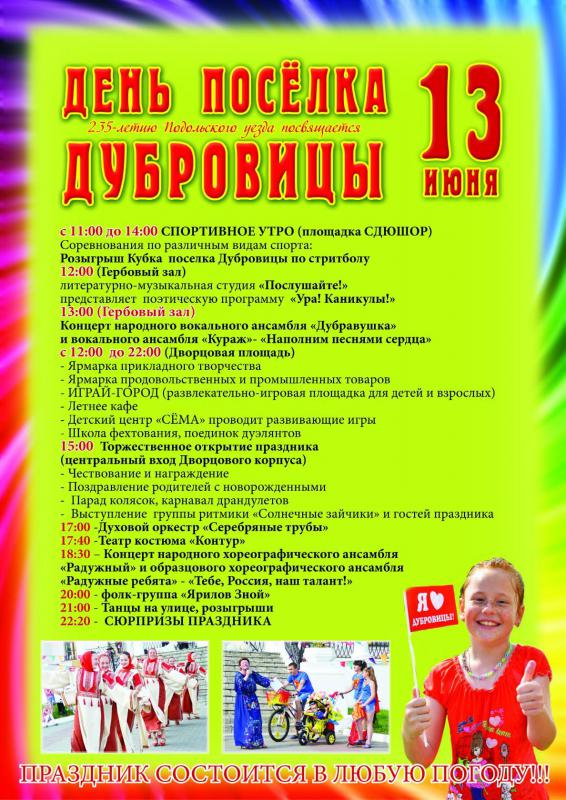 - Тема: Афиша мероприятий Подольска (концерты, праздники, вечера)