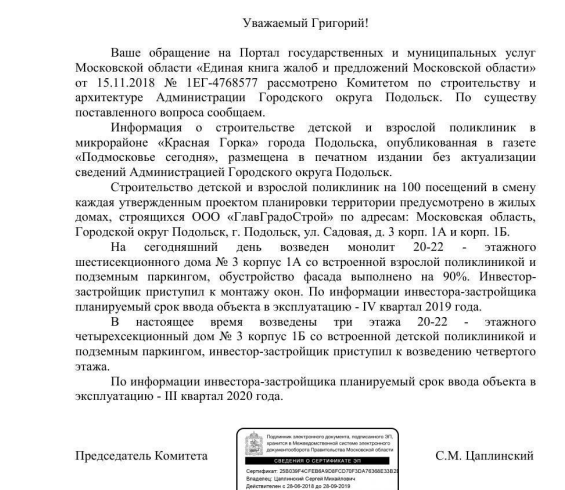 На собрании дольщиков представители администрации сказали, что впервые слышат о мошеннических действиях ГГС. Все мы понимаем, что договоры о бронировании и новый вариант ПДДУ - филькина грамота. Эти документы позволят ГГС отсрочить время оформления ДДУ на Литейную и Народную, успешно распродать все ...