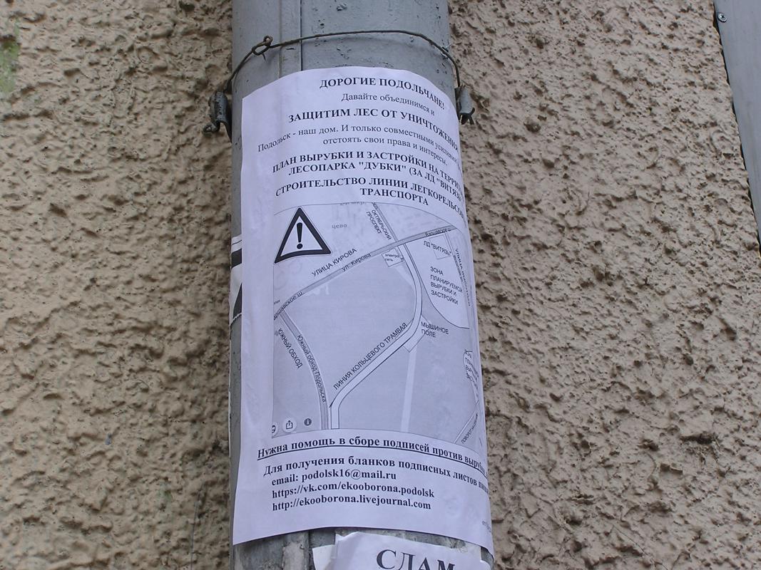 И в администрацию Подольска, что бы красивые листовки всем раздавали, что не позволим лес рубить.