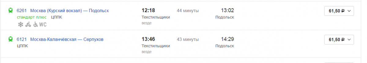Везде, кроме Подмосковная Ежедневно ЦППК Поезд отправился со ст. ПОДОЛЬСК