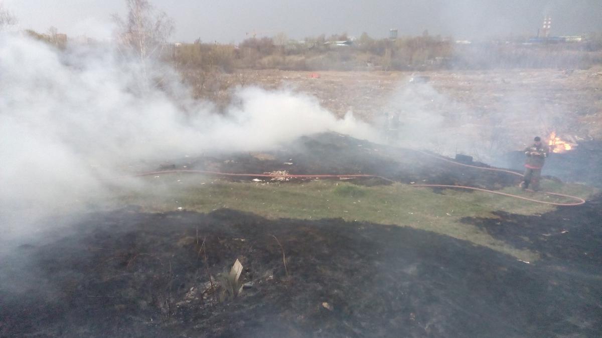 Вчера вечером в карьере тушили траву. С мусором...