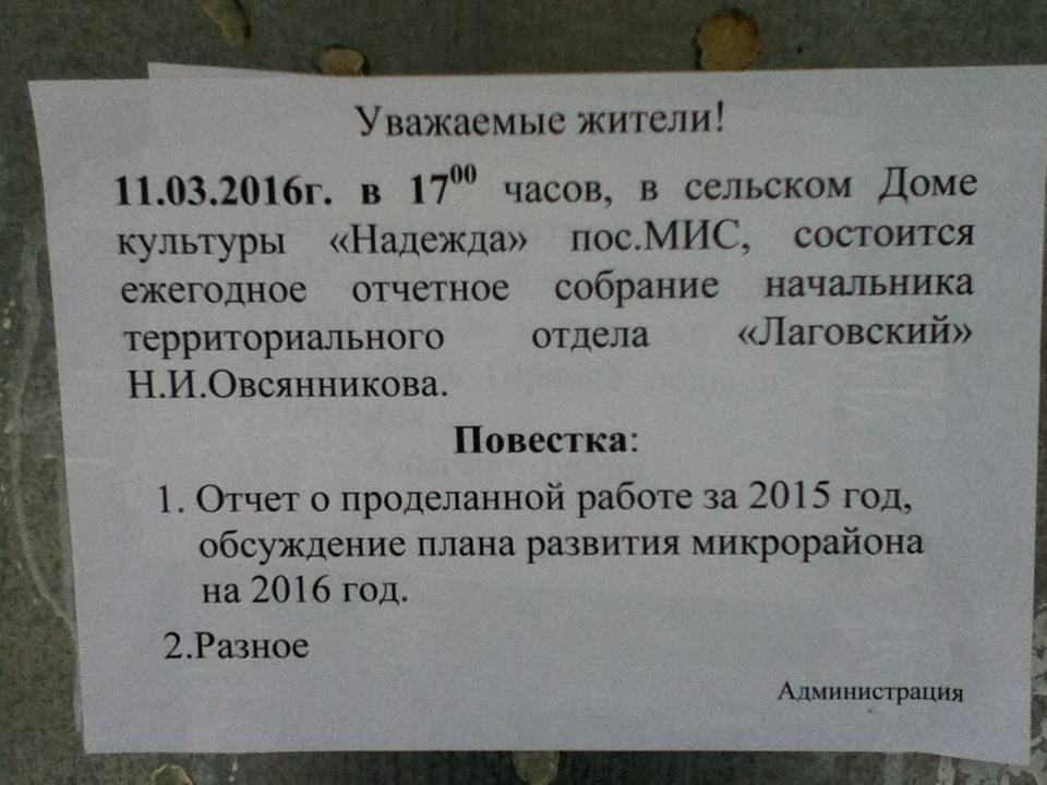 Глава Лаговского отчитается о работе и расскажет о планах 11 марта.