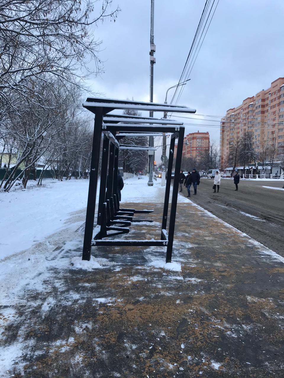 эту фотку можно подписать" Установка новых остановочных пунктов в Подольске завершена"