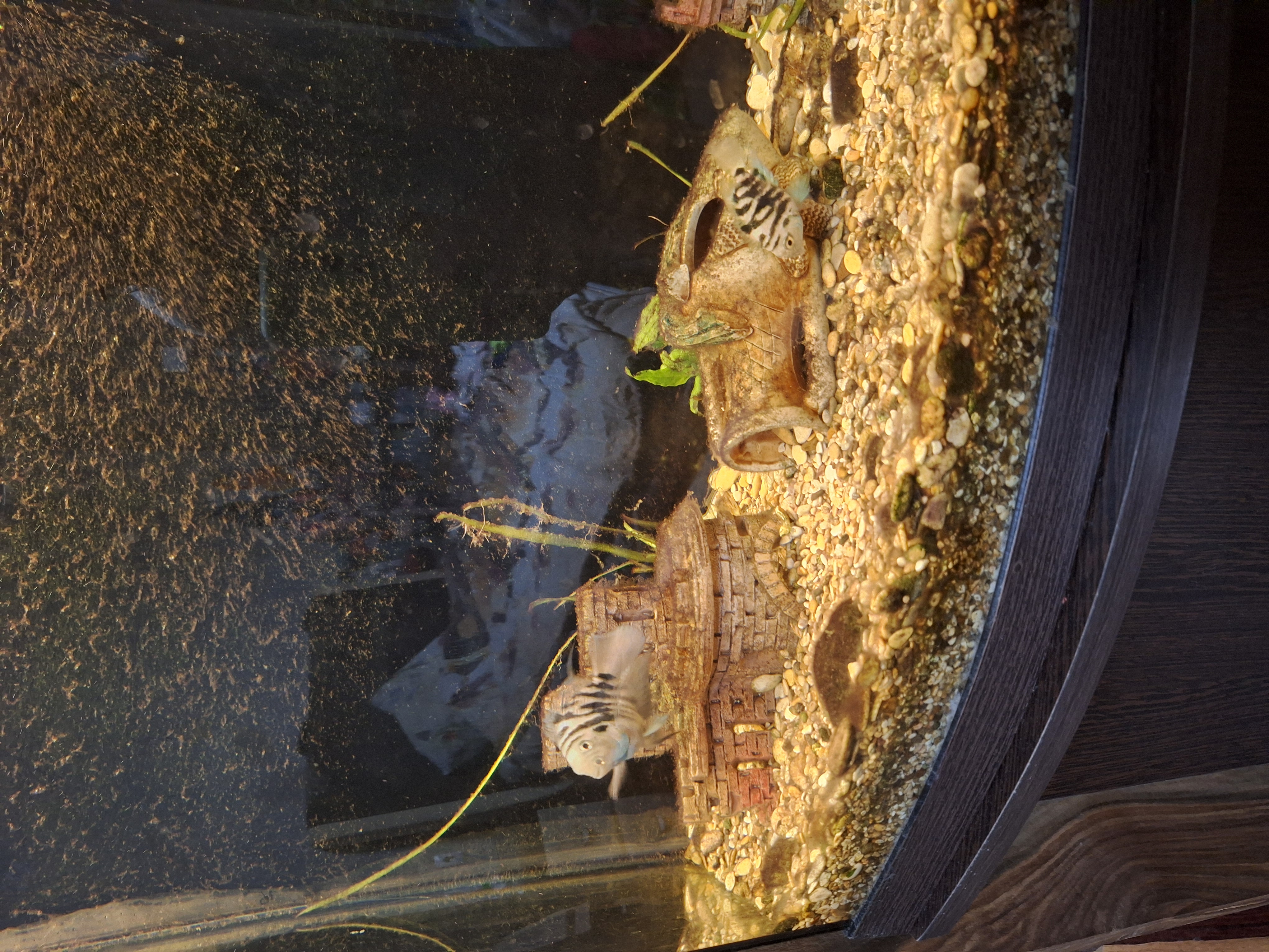 Здравствуйте. Продам аквариум 100 литров. Освещение самодельное, но можно покупать лампы, мы просто их вытащили, когда перегорели. Отдаю со всем содержимым, в том числе сформировавшаяся пара сапфировых попугайчиков. Сейчас они в данный момент выводят мальков. Раньше тоже много мальков уже было. Также фильтр б/у в рабочем состоянии, грунт, запас корма на год, кормушка, новый обогреватель. Могу даже воду отдать в бутылях, чтоб сразу рыбок в него выпустить. Заднюю стенку очищу, когжа будут забирать аквариум.