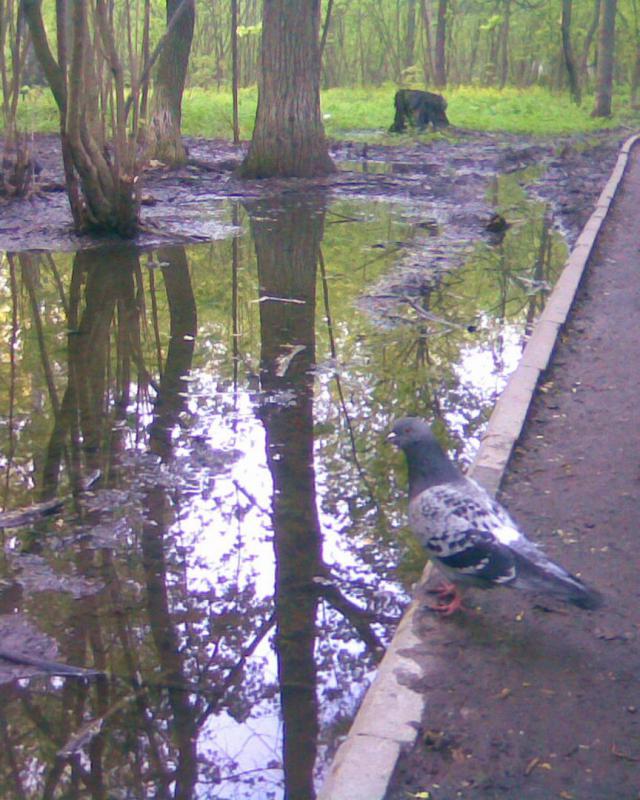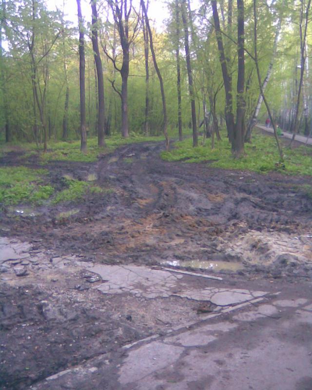 Помимо того что для укладки нескольких метров новой дорожки к 17 школе трактором размесили старую, еще и землю испортили, между кустов и стволов совершенно безобразные колеи, по всему парку.