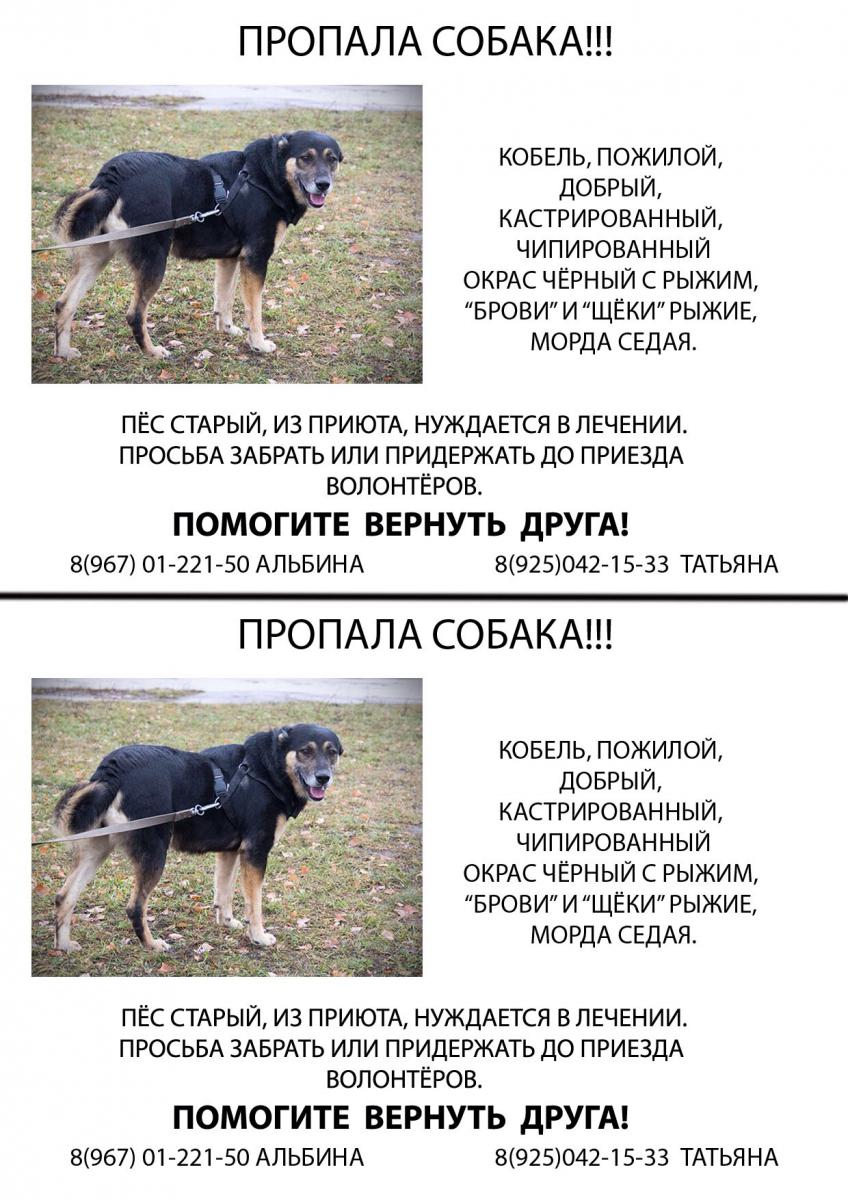 3 февраля 2015 года пропала собака. Южный посёлок, в районе улицы Машиностроителей, Долгого, Южный проезд. Кобель, очень пожилой, морда седая, без ошейника. Дворняга чёрного цвета, морда сильно седая, высота в холке примерно как у спаниеля. Кличка Томас. Мог убежать в Ёлочки.