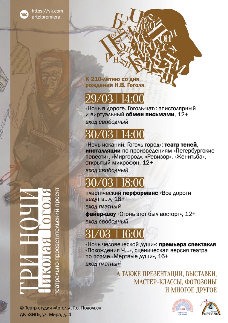 Проект "Три ночи Николая Гоголя" и премьера спектакля "Похождения Ч..." продлится три дня, с 29 по 31 марта, в ДК ЗиО